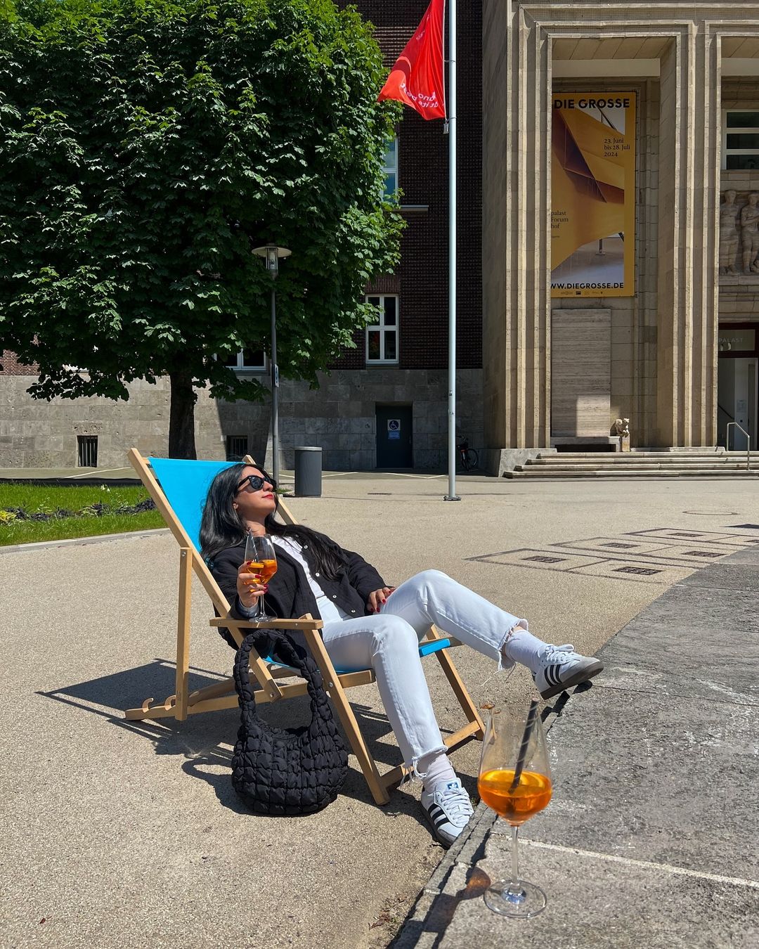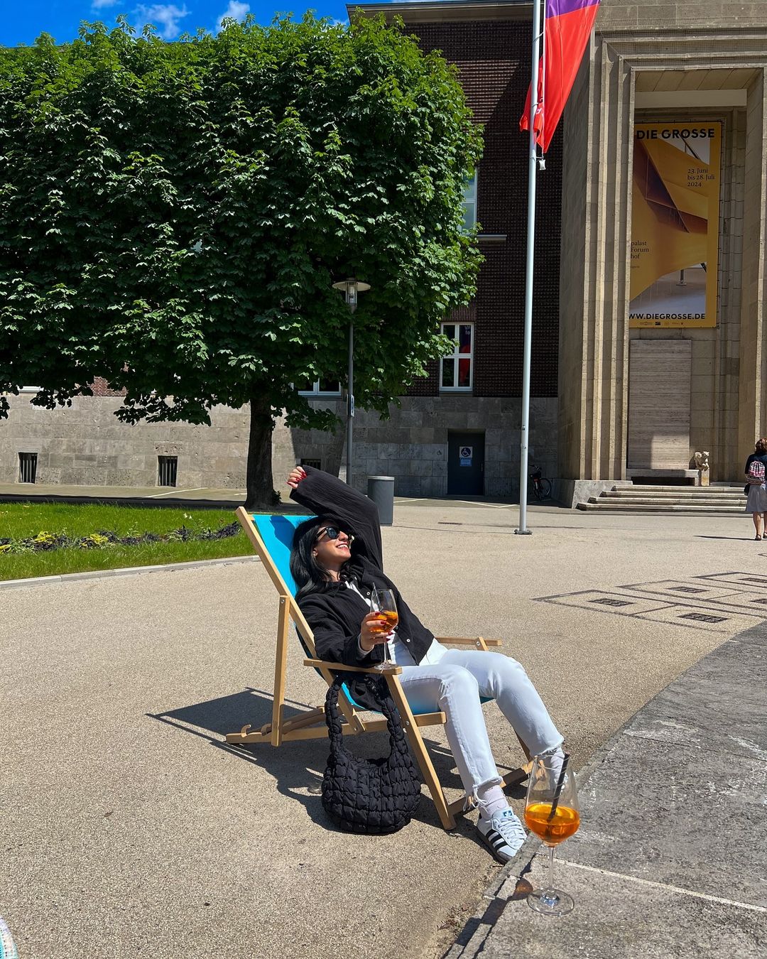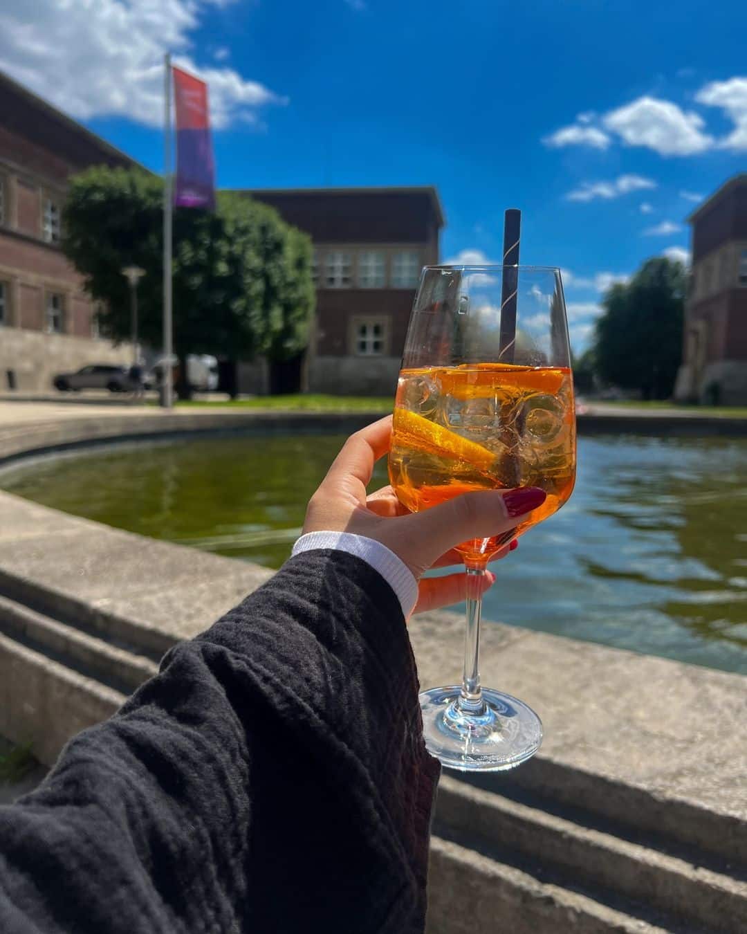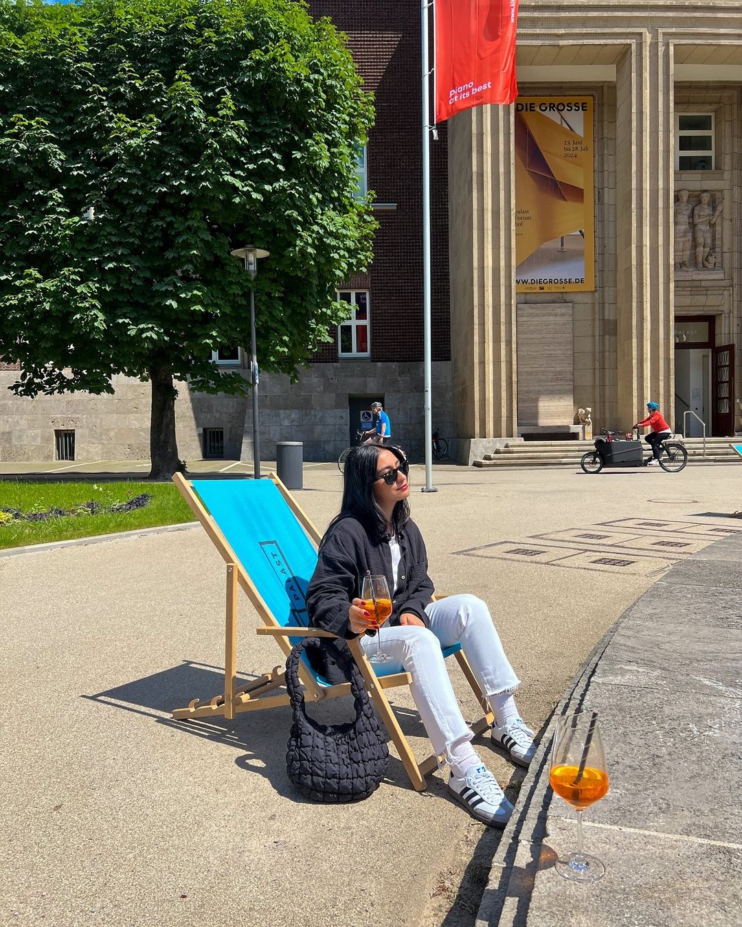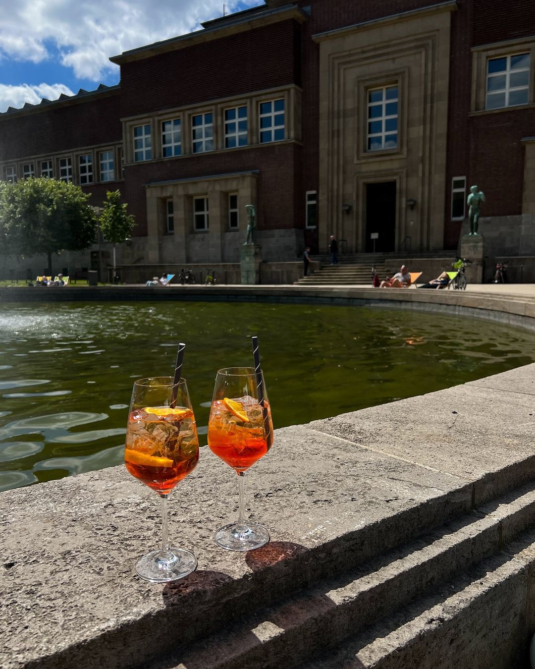 Kuntspalast sanat müzesinin bahçesindeki Anna Maria Cafe! Burada olayı güzelleştiren şey kesinlikle bahçedeki havuzun çevresindeki şezlonglu oturma alanları. Aperol iyi, ortam şahane diyebilirim.